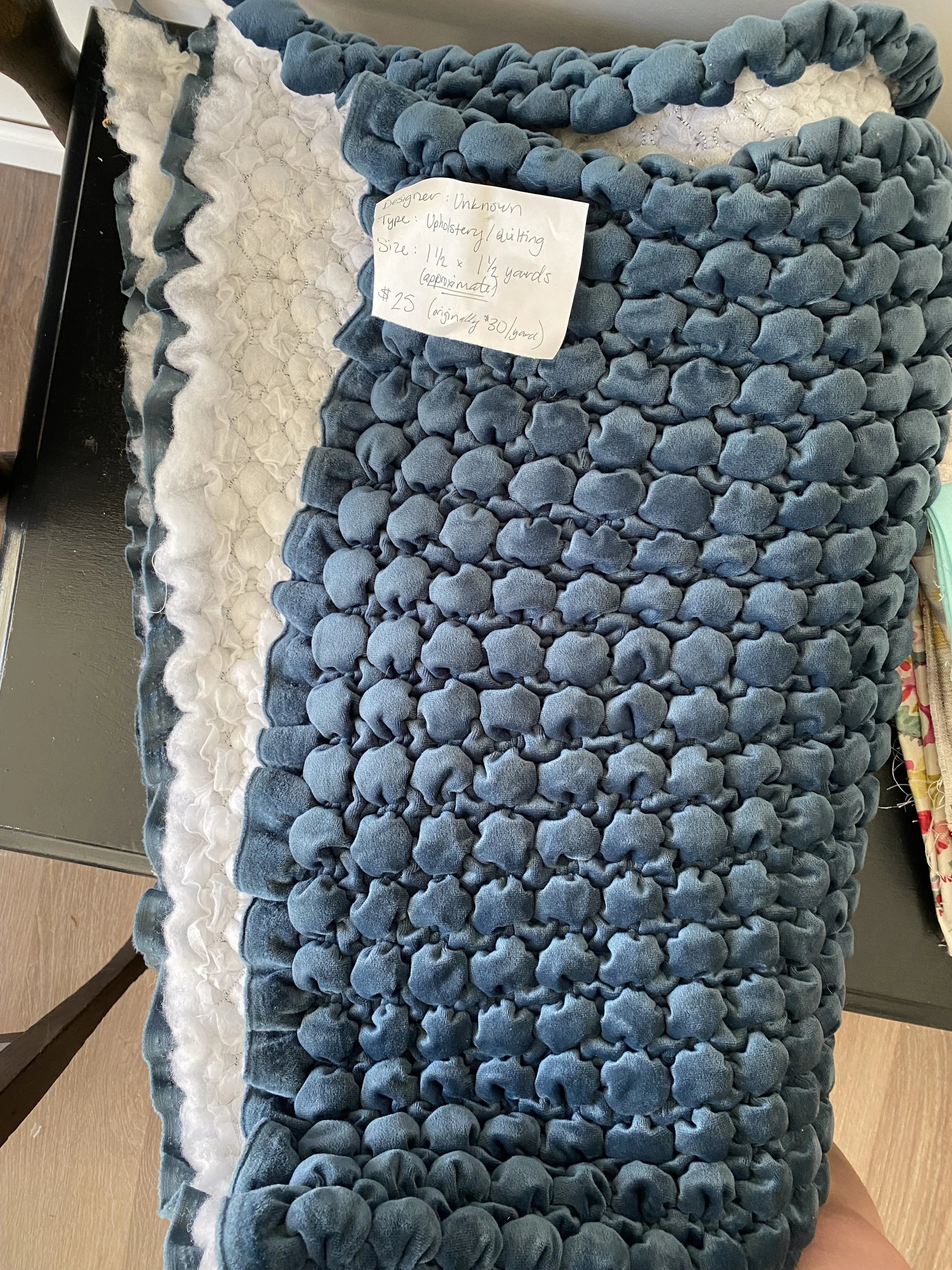 $25. New upholstery\quilting fabric. Dark blue\green. Approximately 1.5x1.5 Yards.